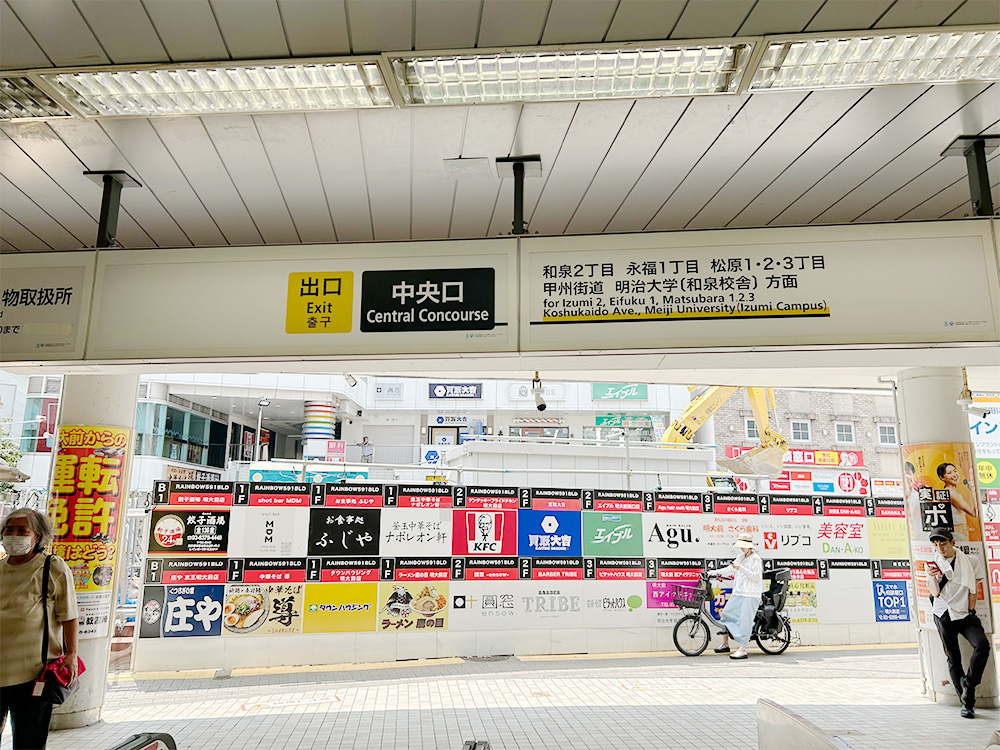 「明大前」駅の中央口改札を出たら左に進んでください。