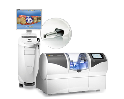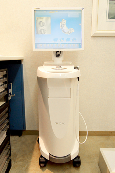 CAD/CAMの技術を用いて3D光学カメラにより印象を行い、コンピュータ上で設計し、セラミックブロックを削って修復物を作製するシステムです。